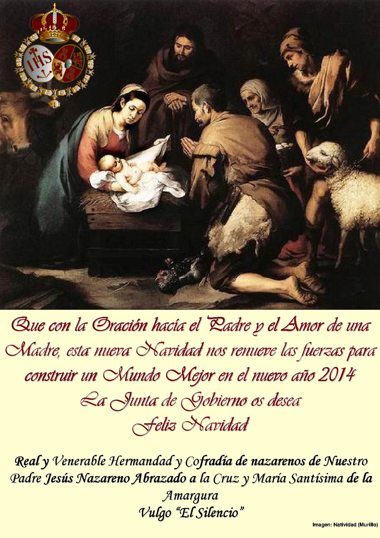 El Director Espiritual, Hermano Mayor y Junta de Gobierno de esta Real y Venerable Hermandad, os desea a todos los hermanos, fieles, visitantes y público en general, una Felíz Navidad y un próspero y venturoso año 2014.