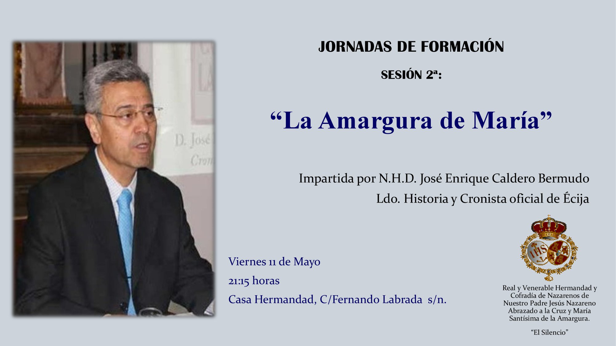 Será impartida por N.H.D. José Enrique Caldero Bermudo, licenciado en Historia y Cronista oficial de Écija.Con esta charla formativa, se continúa con el Plan Formativo que la Hermandad ha diseñado y que concluirá con la siguiente jornada formativa en el mes de junio, concluyendo y cerrando así el curso cofrade 2017/2018. Es la formación de los hermanos, un pilar fundamental de toda Hermandad tan olivado pero tan necesario, que hace, que esta Corporación adquiera el compromiso firme para con dicha causa tan importante.