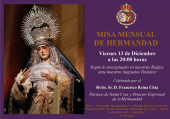 Este viernes, 13 de diciembre, se celebrará (D.m.) misa mensual de Hermandad a las 20:00 horas, ante el altar de nuestros Sacratísimos Titulares.