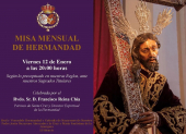 Este sábado 9 de marzo, a las 21:00 horas, se llevará a cabo (D.m.), en nuestra sede canónica, la meditación ante nuestro Sagrado Titular, por parte de nuestro hermano D. José Enrique Caldero Rodríguez.