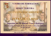 El viernes 12 de mayo, a las 21:30 horas, tras la misa de Hermandad, concluirá el V Foro de Formación, con la tercera sesión: “El culto eucarístico, fuera de la misa”.