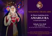 Tras la Eucaristía, a las 20:30 horas, se procederá al solemne traslado de Ntro. Padre Jesús Nazareno Abrazado a la Cruz a su paso procesional.