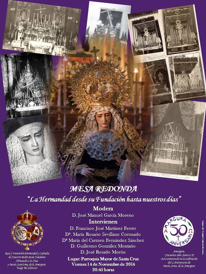 Tras la celebración de la Eucaristía, a las 20:45 horas, tendrá lugar la Mesa Redonda, bajo el tema "La Hermandad desde su fundación hasta nuestros días"