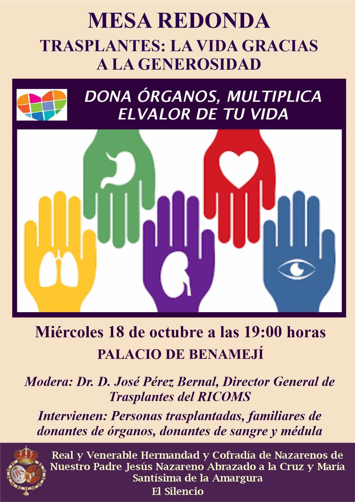 El próximo miércoles 18 de octubre a las 19:00 horas, se desarrollará en el Palacio de Benamejí, una mesa redonda sobre la importancia y necesidad de las donaciones de órganos, sangre y médula.