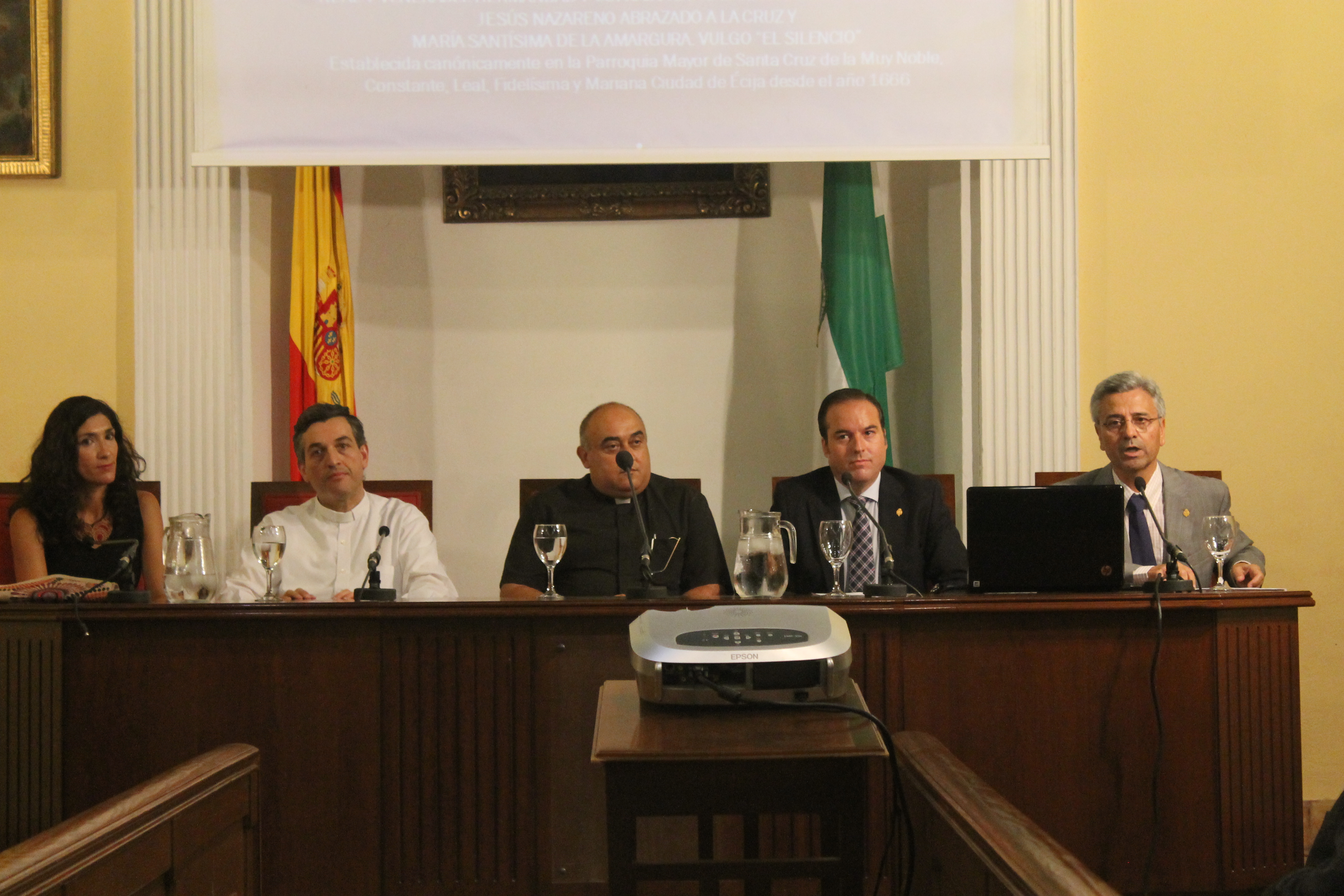 El lugar el elegido para llevar a cabo la presentación fué el Palacio de Benamejí, cuyo aforo quedó pequeño para albergar al cuantioso público congregado, aproximadamente ciento cincuenta personas. Se dieron cita representaciones del Clero local, Autoridades del Excmo. Ayuntamiento de Écija y distintas formaciones políticas, Consejo General de Hermandades y Cofradias, Hermanos Mayores, Hermanos de esta Corporación y cofrades en general, se dieron cita para conocer de primera mano la celebración de esta efeméride que se avecina.