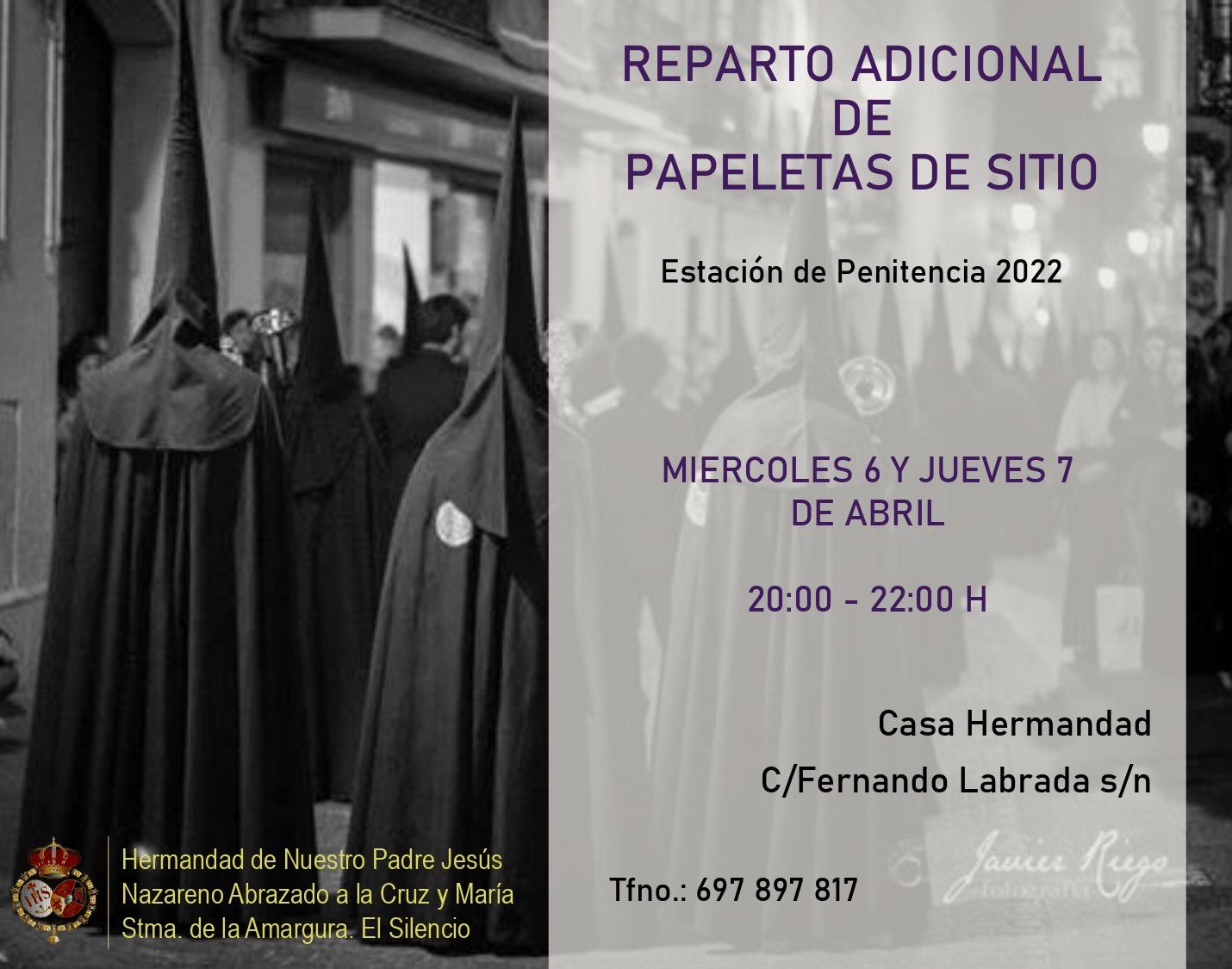 Esta Real y Venerable Hermandad, pone a disposición de sus hermanos, dos días de reparto adicional de papeletas de sitio de cirios, para la estación de penitencia 2022, durante este próximo miércoles 6 y jueves 7 de abril, en horario de 20:00 a 22:00 horas.