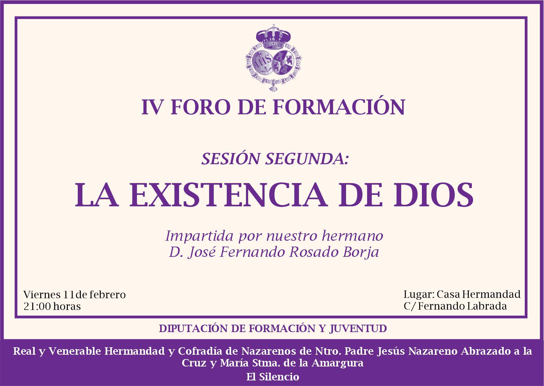 Sobre el tema “La Existencia de Dios”, será impartida por nuestro hermano D. José Fernando Rosado Borja.